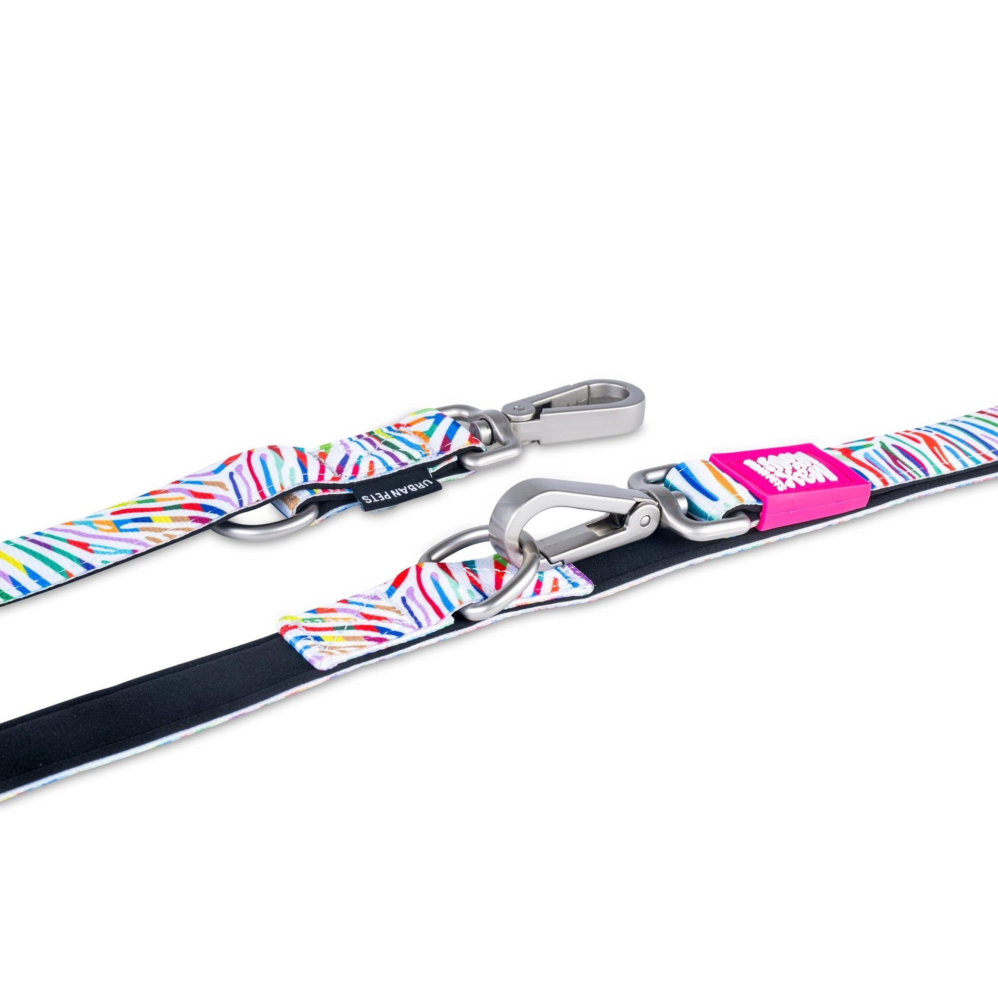 Three additional D-rings ensure ultimate flexibility. You can use the 200 cm long leash as a short / medium / long / shoulder / hip or even a double leash. Practical accessories can also be attached. Thanks to the padding and super soft and quick-drying neoprene on the back, the tear-resistant versatile leashes are very comfortable to hold.